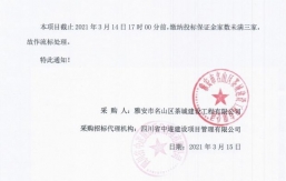 本項目截止2021年2月18日17時00分前,繳納投標保證金家數未滿三家,故作流標處理。特此通知!采購人:雅安市名山區(qū)茶城建設工程有限公司采購招標代理機構:四川省中遂建設項目管理有限公司日期:2021年2月20日...